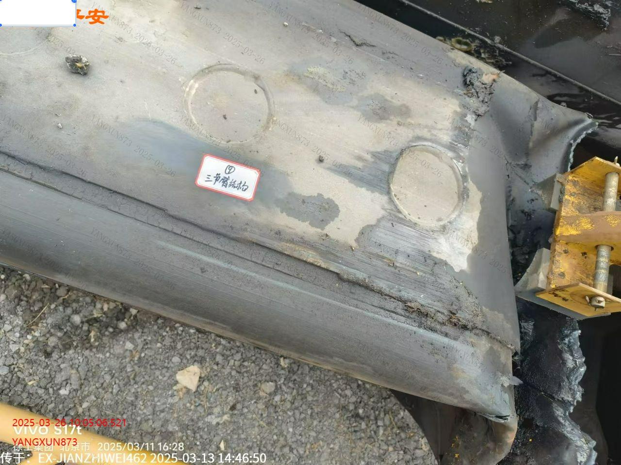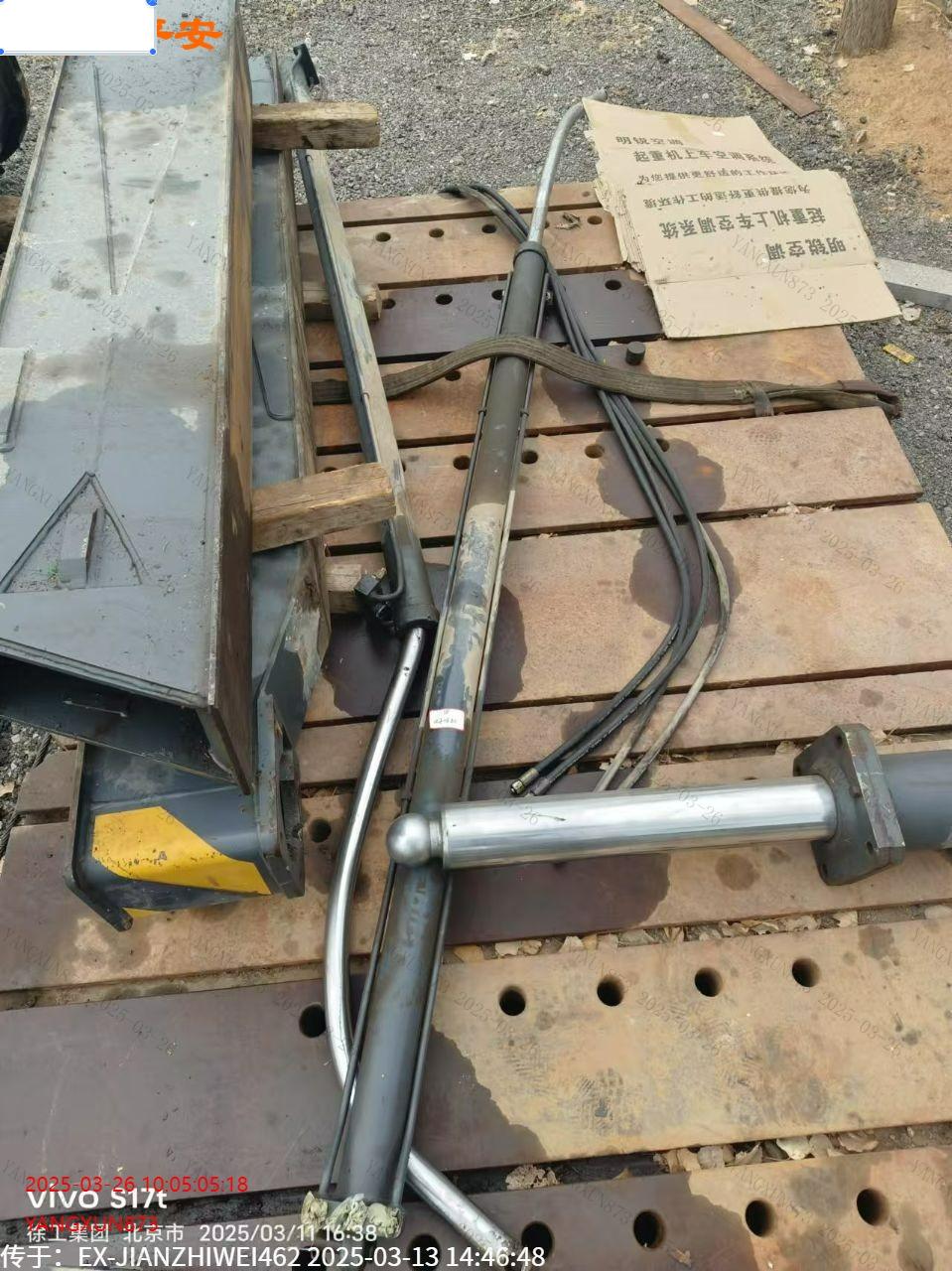 标的侧翻倾覆受损,吊臂及油缸已拆解,详细受损照片见附件