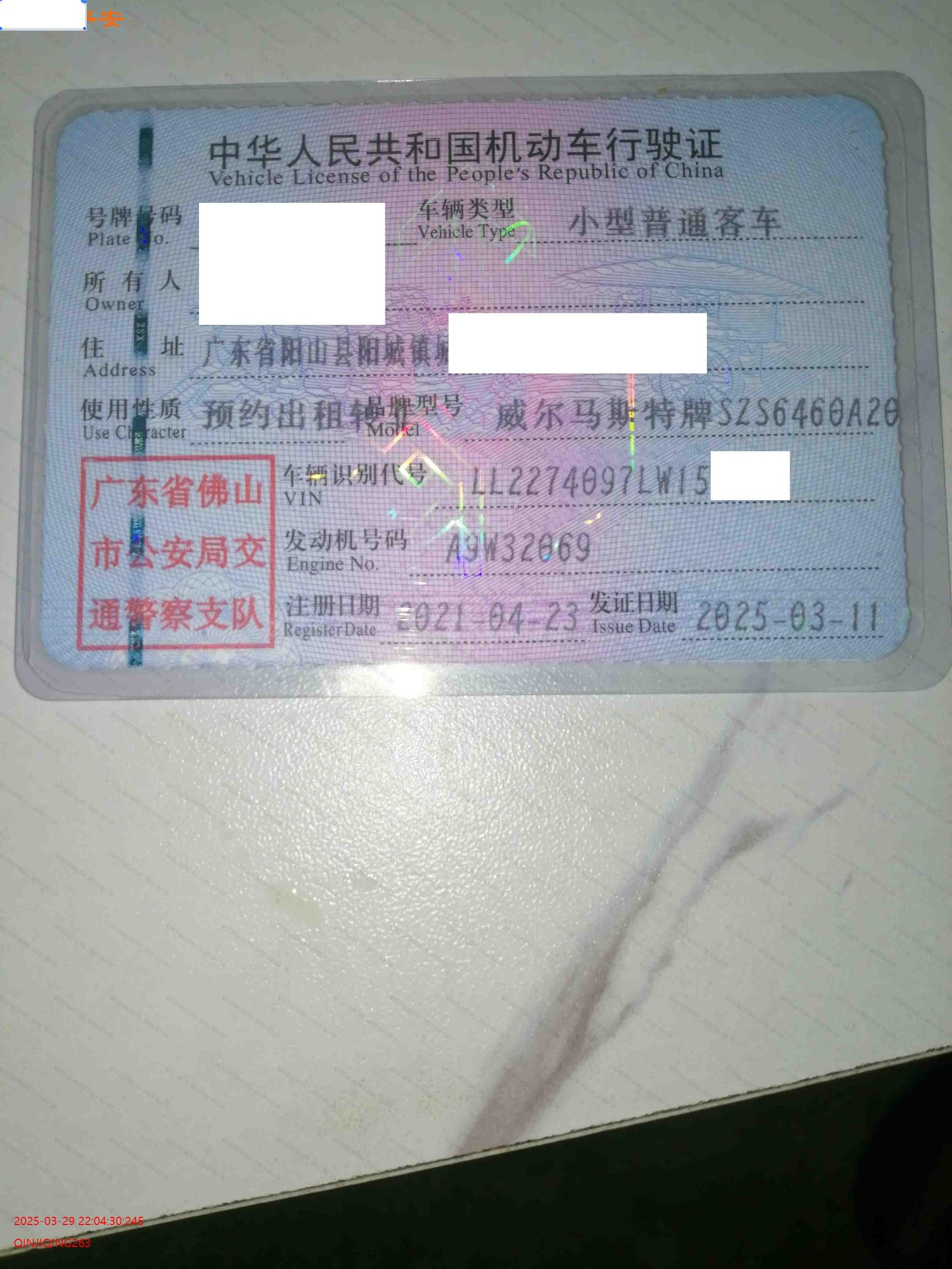 车辆登记日期