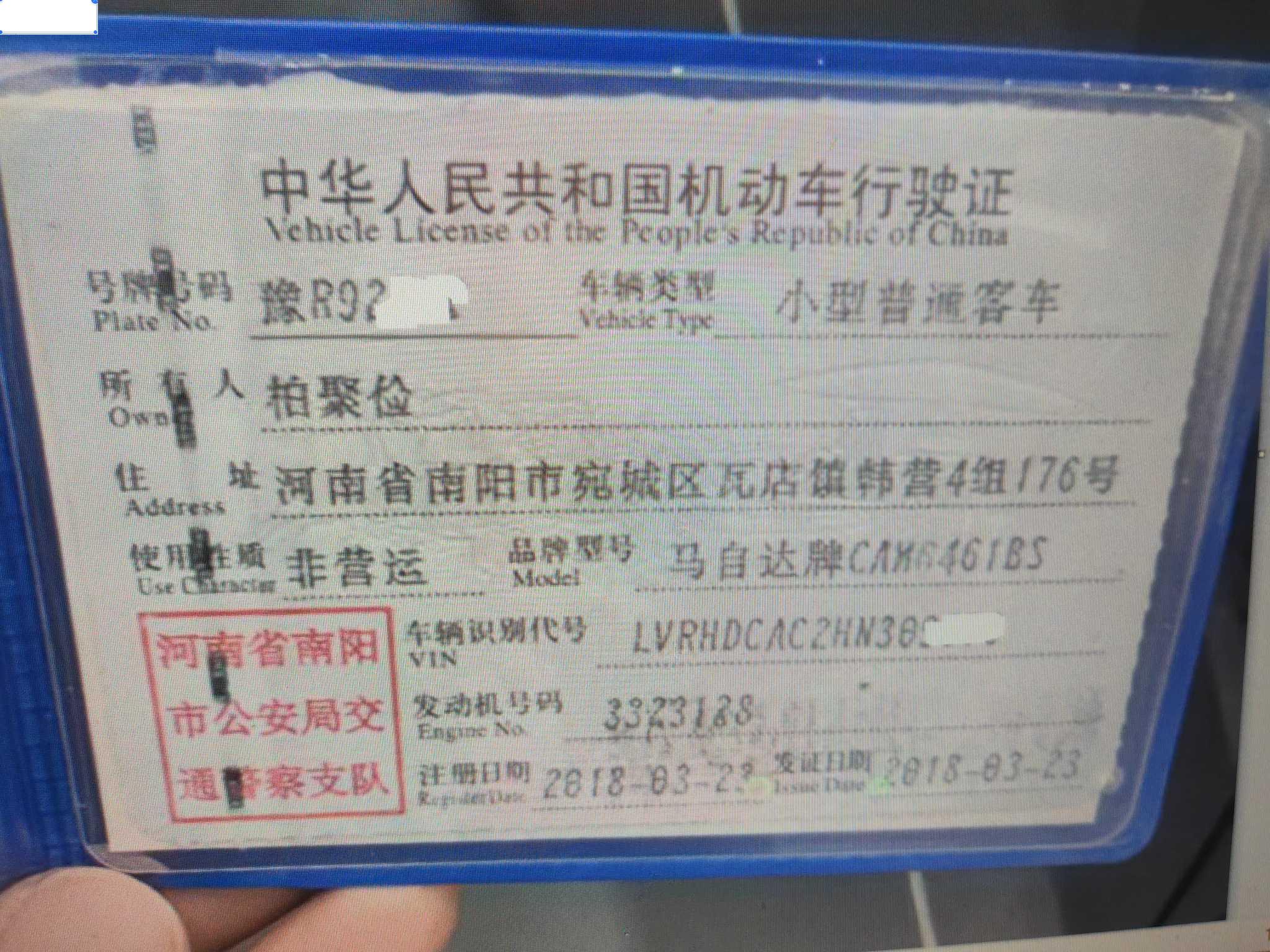 车架号受损: