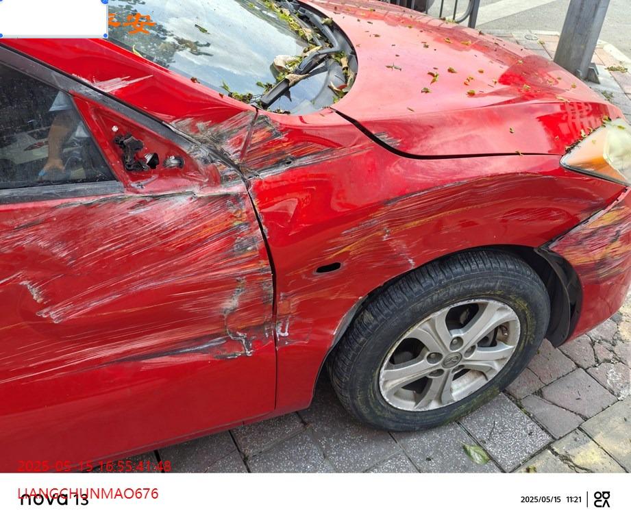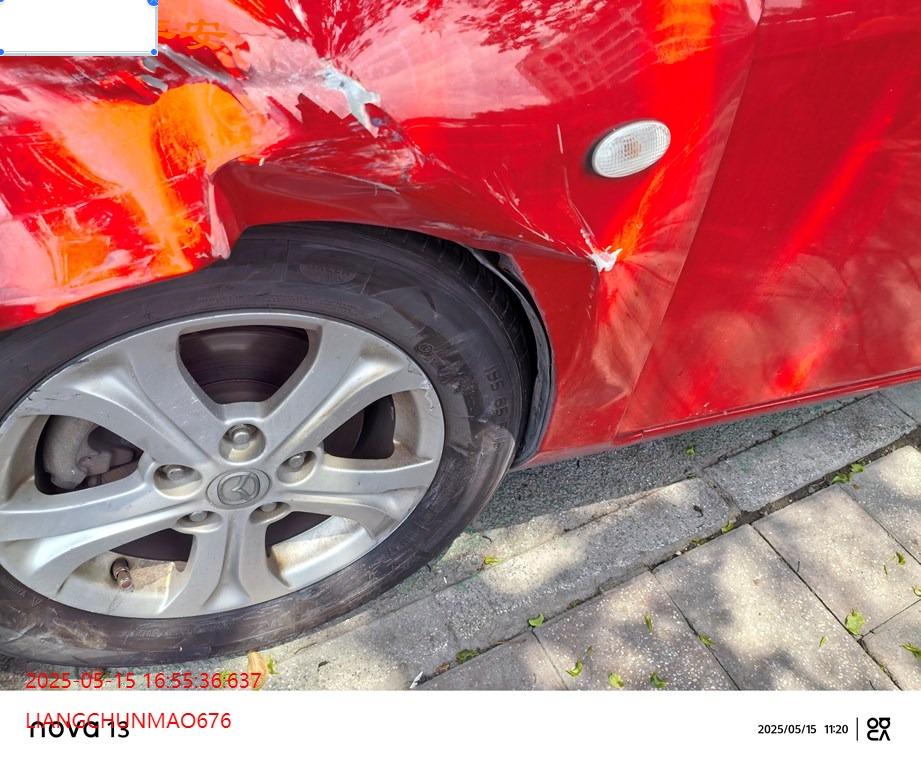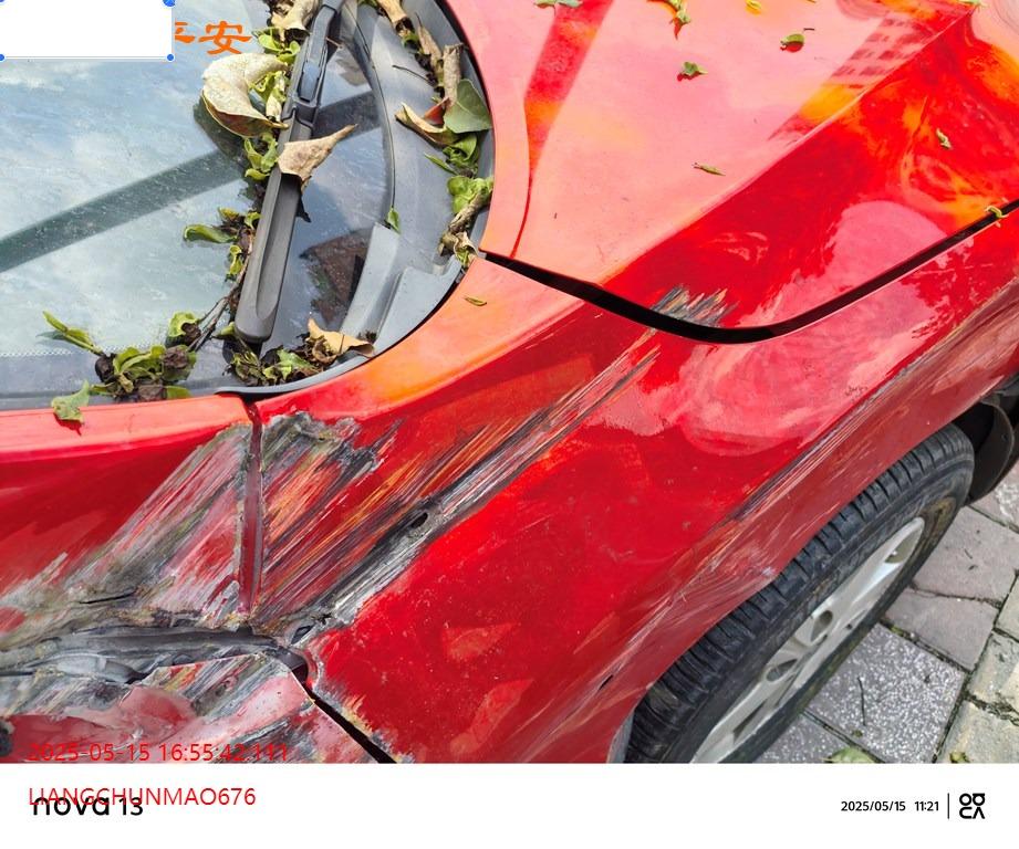 车辆左前、右前、后部受损,具体损失见照片。车中心车辆,有1500元费用