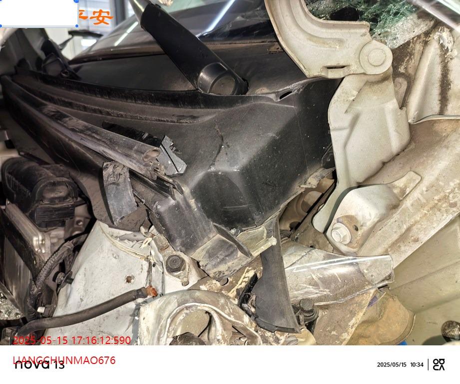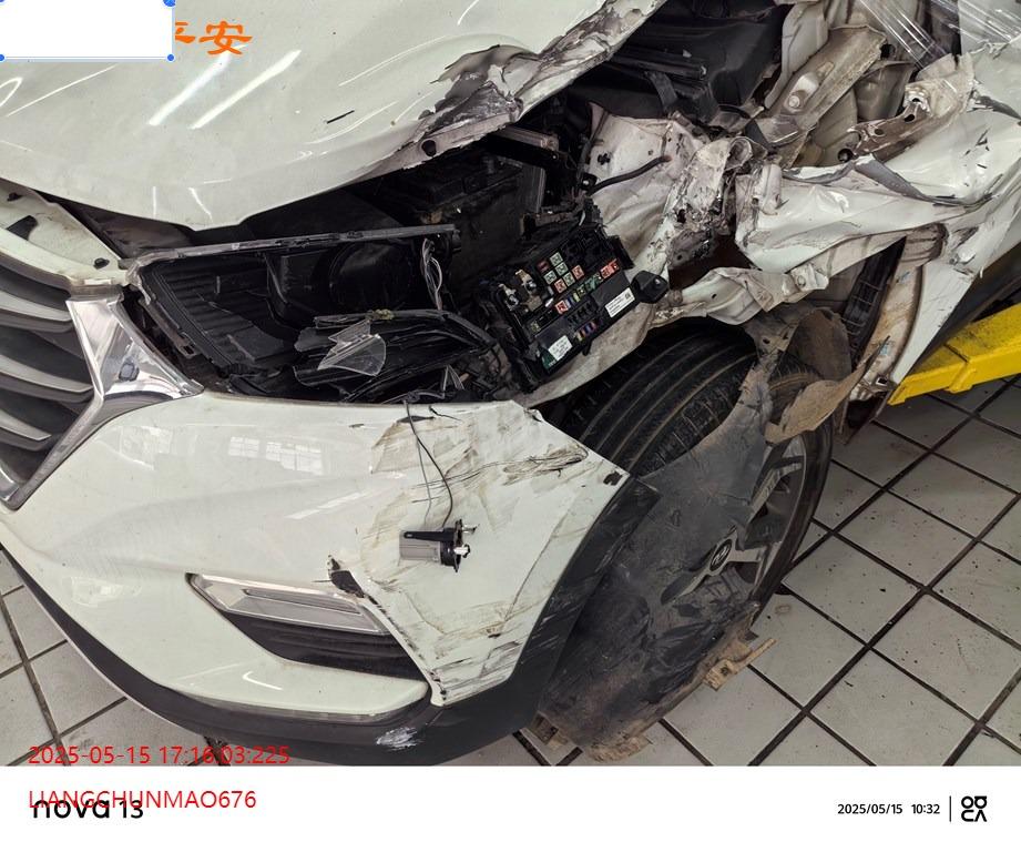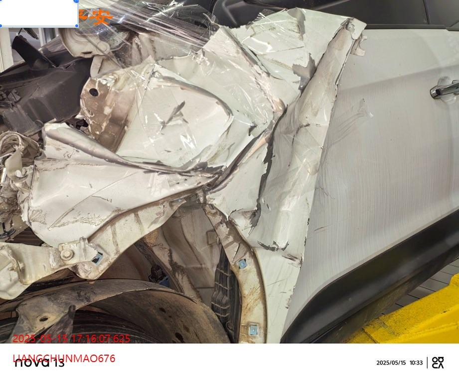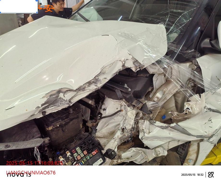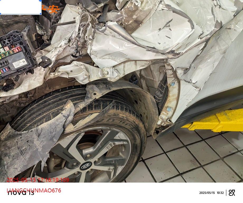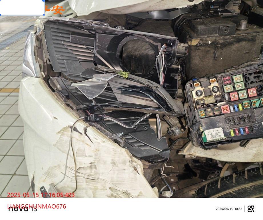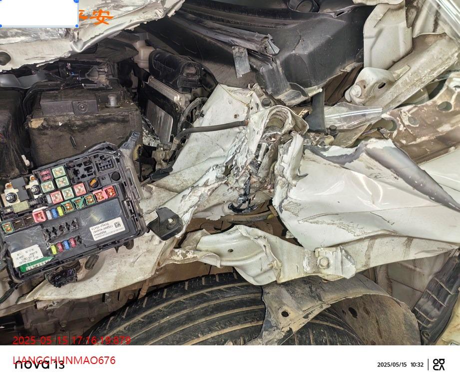 车辆左前部受损,具体损失见照片,前部二次事故。