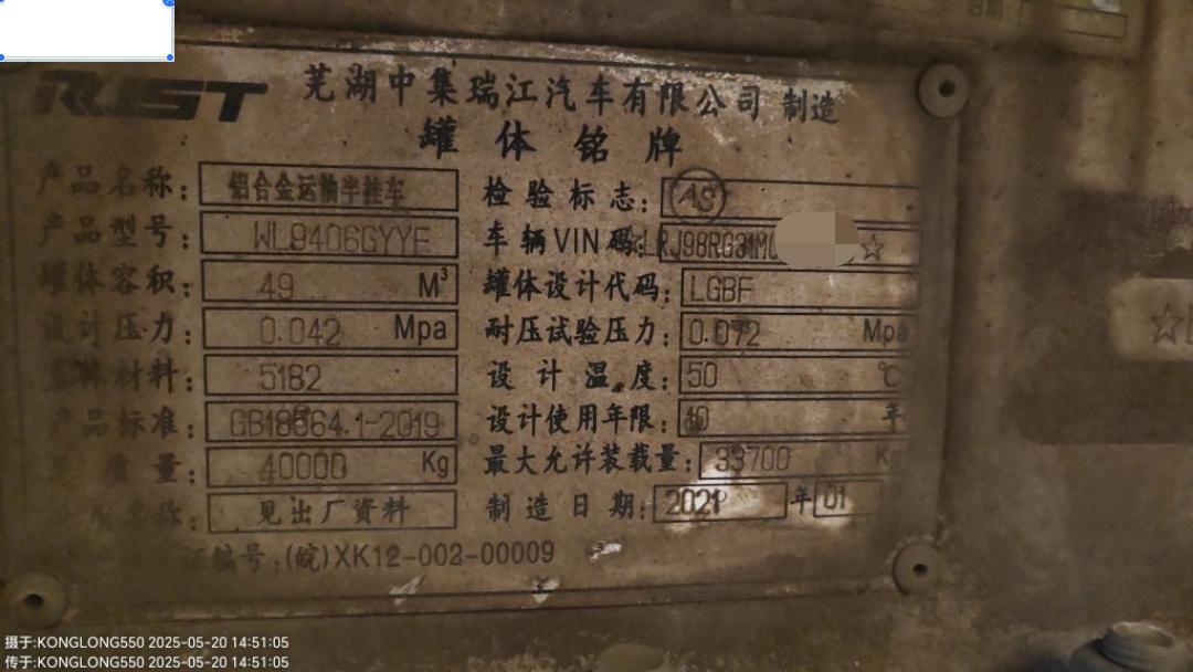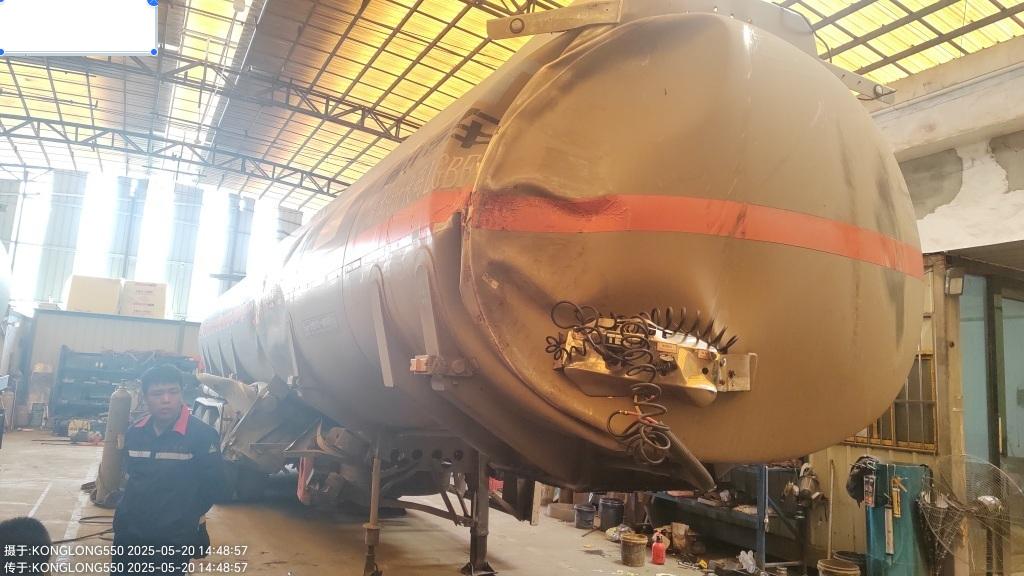 铝合金油罐车挂车,罐体受损严重,大梁变形,损失较重,申请询残