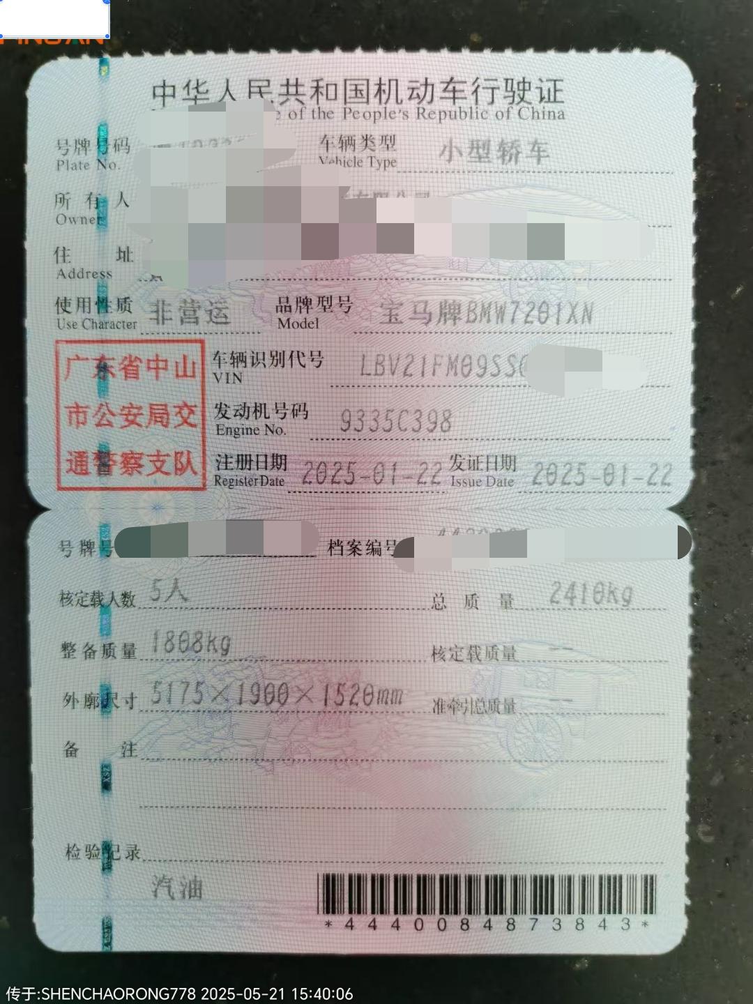 车辆登记日期