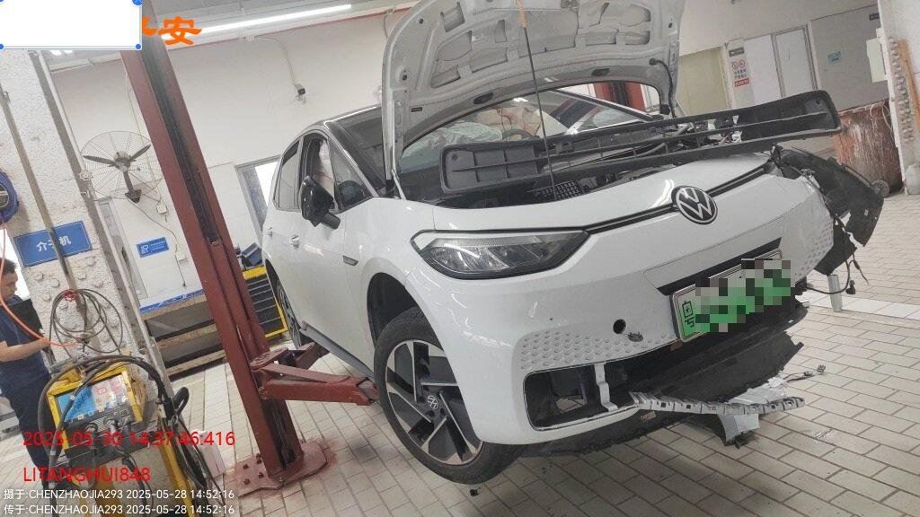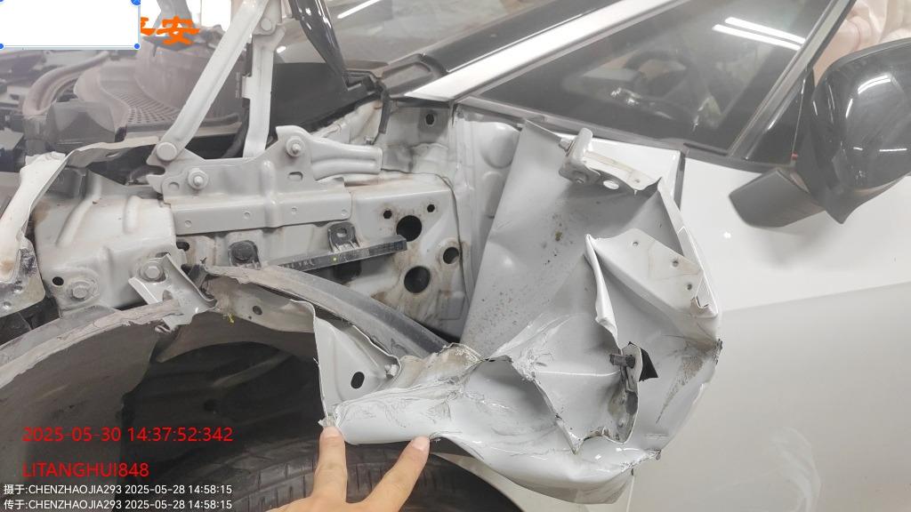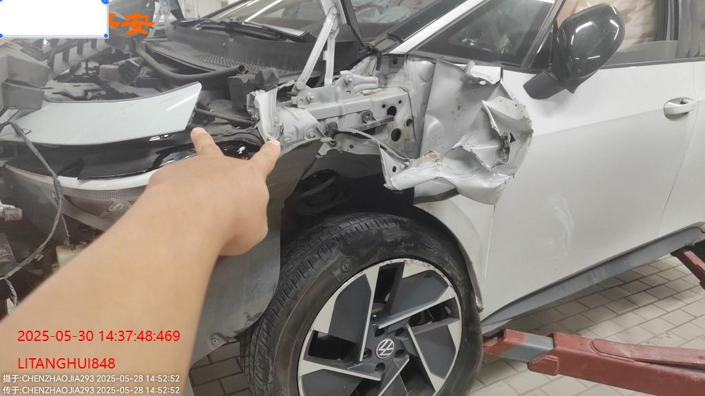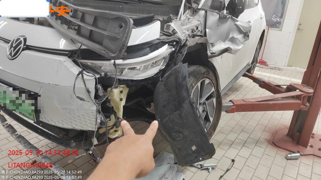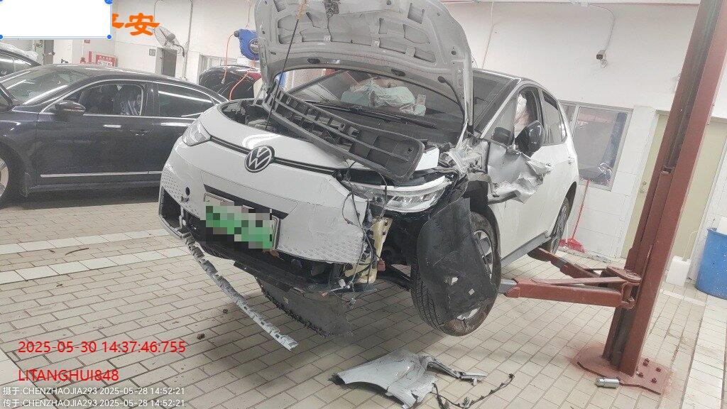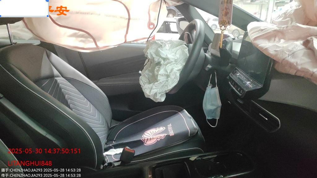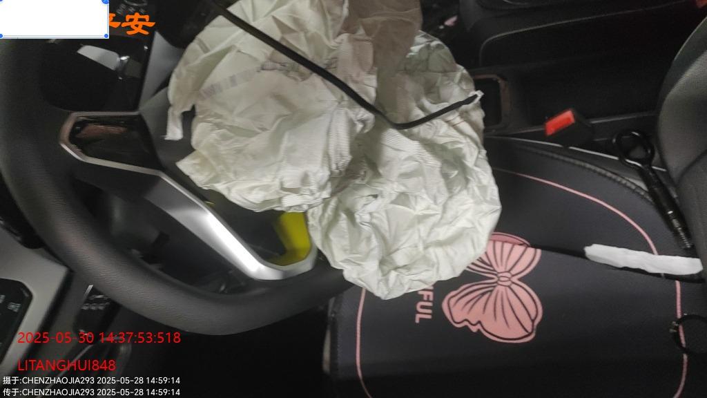 底盘受损,大电池无损,气囊弹开,