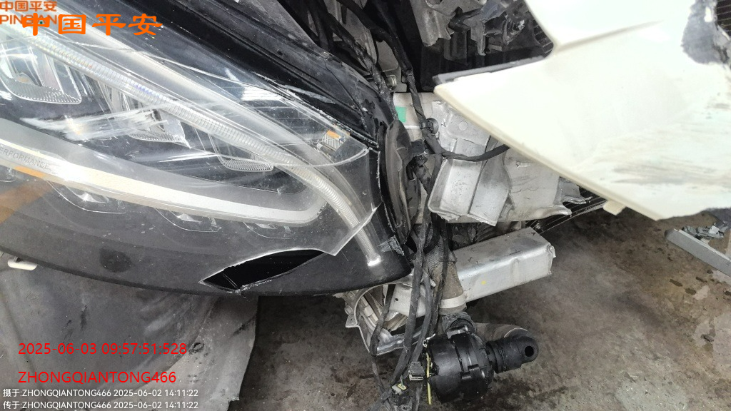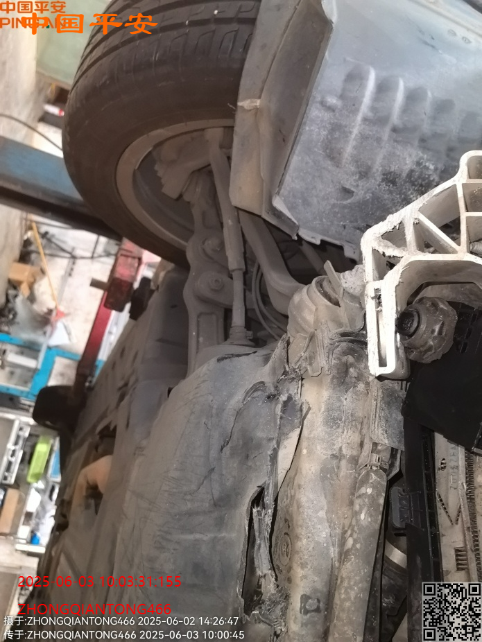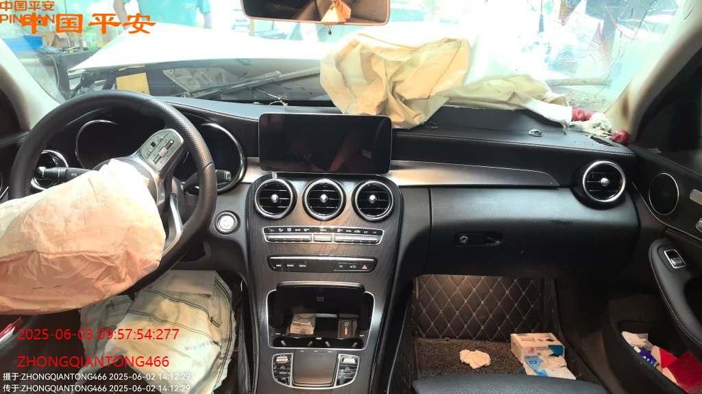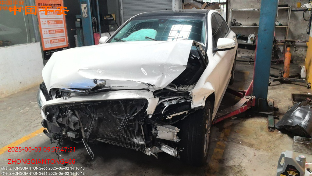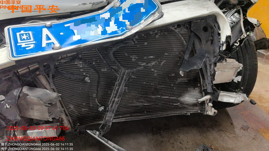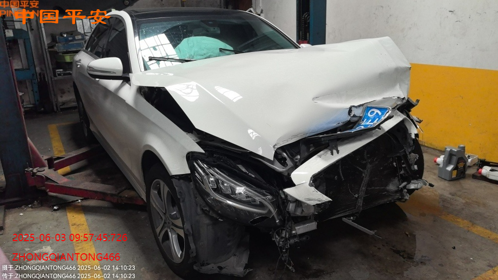 标的前部受损,车内气囊已爆,受损如图所示,无二次事故,